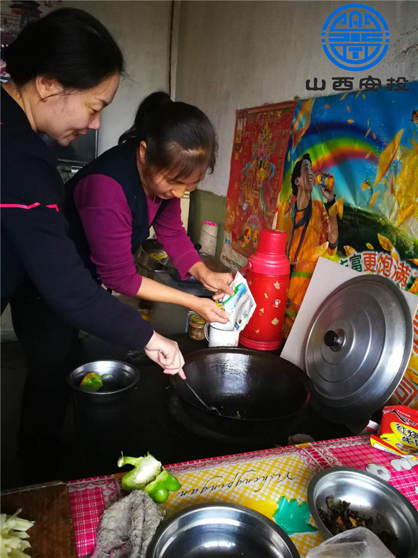 “大嫂,中午好,我又來看您了?!薄鞍パ?,紅紅來了,電話里不是說中午才到嗎?你看這‘山藥抿面’還沒來得及下鍋呢!”“正好我?guī)湍畎咽?,咱一起做?!必毨舻臒崆楦腥玖嗣恳晃粠头鲐?zé)任人,大家紛紛挽起袖子與鄉(xiāng)親們一起生火、做飯。