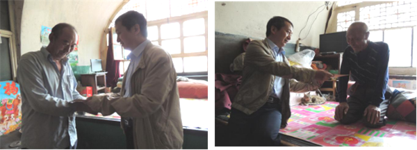 實地調(diào)研期間,梁曉軍董事長一行還走訪慰問了村中60歲以上老黨員,詳細詢問了老黨員的身體、家庭、生活等情況,向他們送上了慰問金,轉(zhuǎn)達黨組織的關(guān)懷,并送上最誠摯的問候和祝福。老黨員對黨組織的關(guān)懷和牽掛表示由衷的感謝,并表示會繼續(xù)發(fā)揮老黨員模范帶頭作用,發(fā)揮余熱。